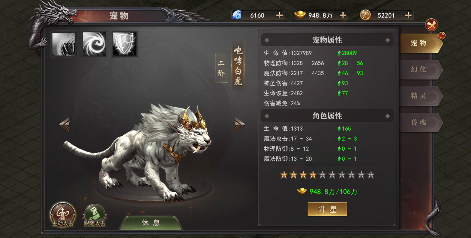 激活战宠幻化卡还可以获得大量的属性加成,提升人物以及战宠的出战实力。