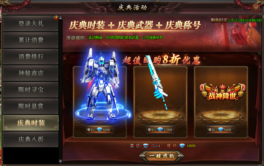 活动规则:活动期间,玩家可购买元旦庆典时装,拿限定时装BUFF,一键团购还可享受8折优惠。