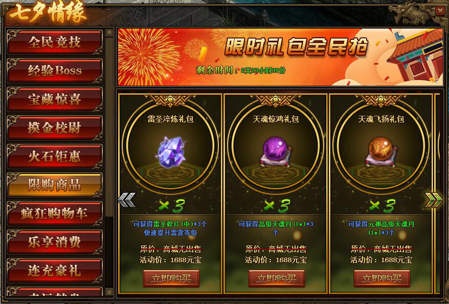 1.活动期间,玩家可在活动面板购买限购商品;(可翻页)