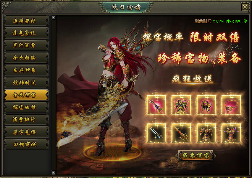 活动说明:活动期间,龙之宝藏产出圣装的概率限时翻倍,极品圣装、珍稀宝物大放送!
