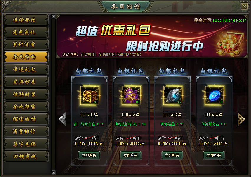 活动说明:活动期间,购买礼包获得抽奖次数,购买礼包次数和抽奖次数每日0点重置。