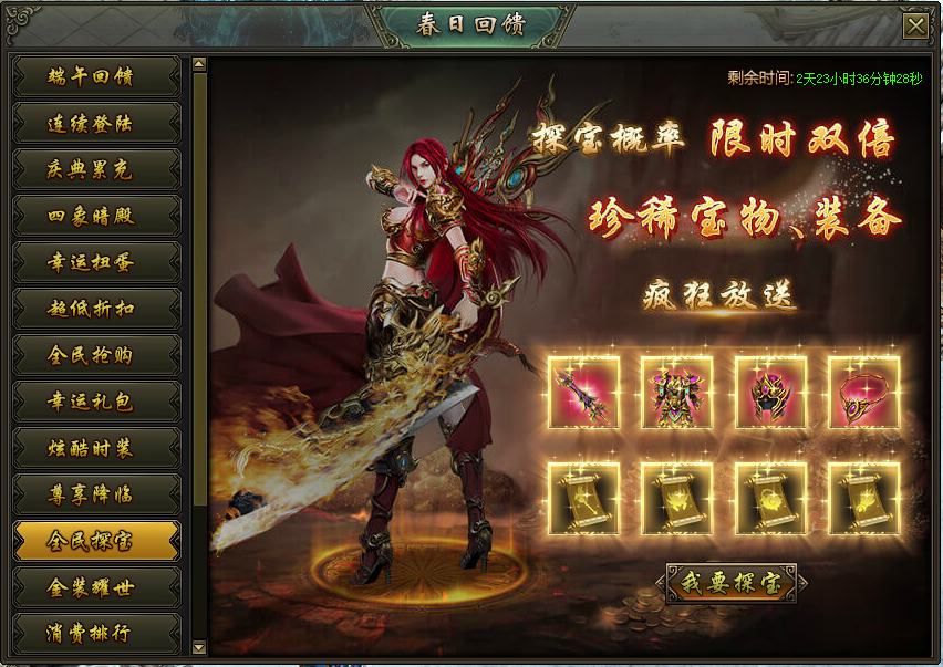 活动说明:活动期间,各类装备集结宝藏,一次探宝多重收获