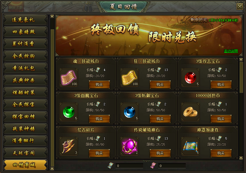 活动说明:活动期间,可使用充值回馈卷和消费回馈卷兑换大量奖励