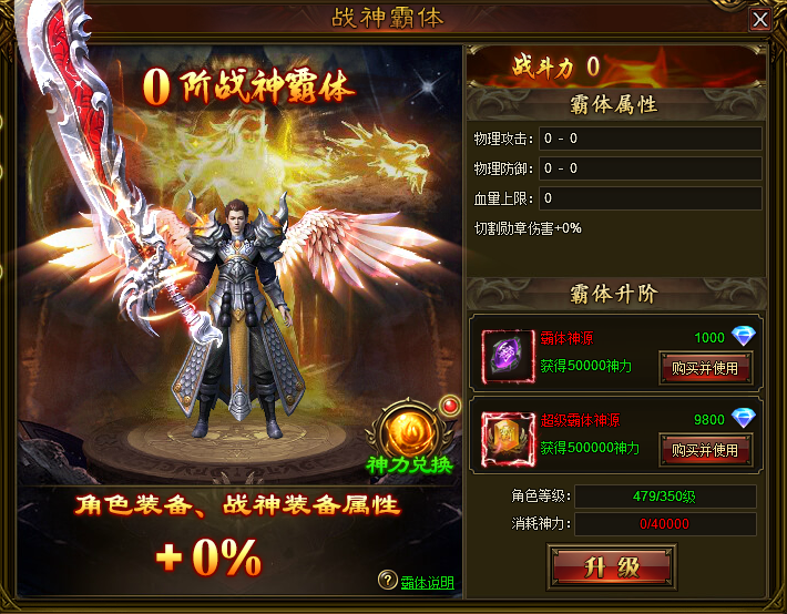 2.提升战神霸体可加成大量属性,大幅百分比角色、战神装备属性。