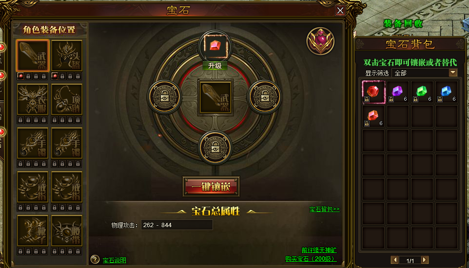 2.每个部位仅能镶嵌一个同一类型的宝石。