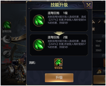 器械技能升级可提升器械技能威力,需消耗技能秘卷,可通过活动获取