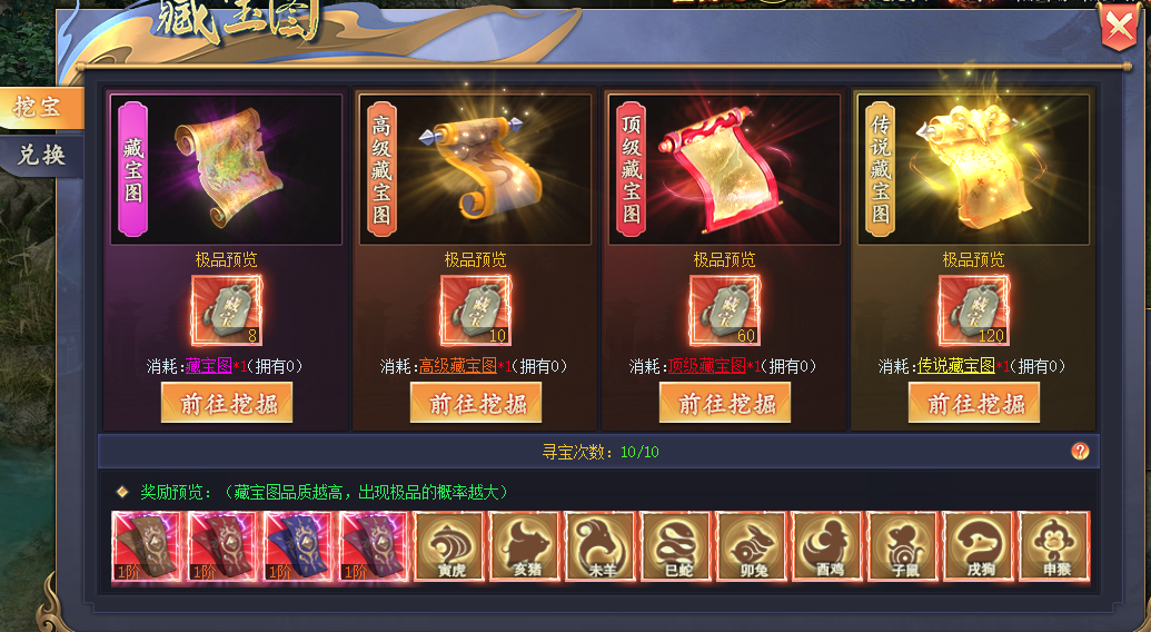藏宝图可获得生肖装备、极品符箓等海量道具