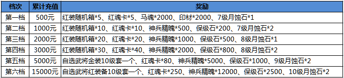 7. 举例:活动期间小明累计充值15000元,活动结束后小明可获得累计充值第六档奖励。