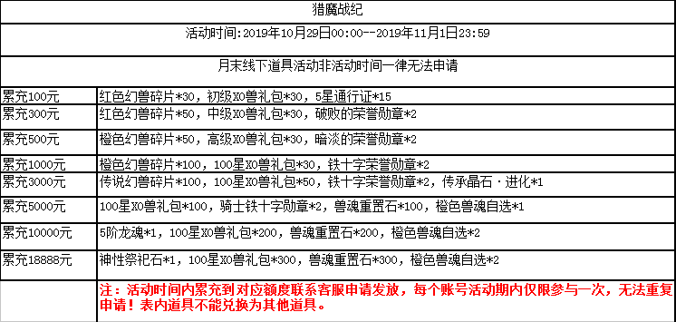 【猎魔战纪】10月29日月末活动