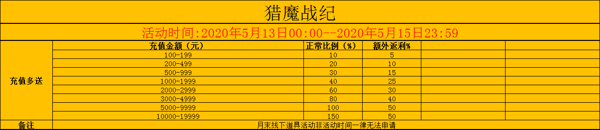 【猎魔战纪】5月13-5月15日月中活动