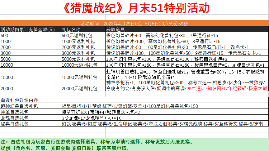 - 【猎魔战纪】4月29-5月5日51节限时活动2023-04-28