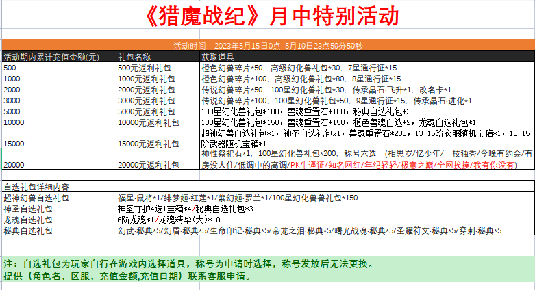 - 【猎魔战纪】5月15-5月19日月中限时活动2023-05-15
