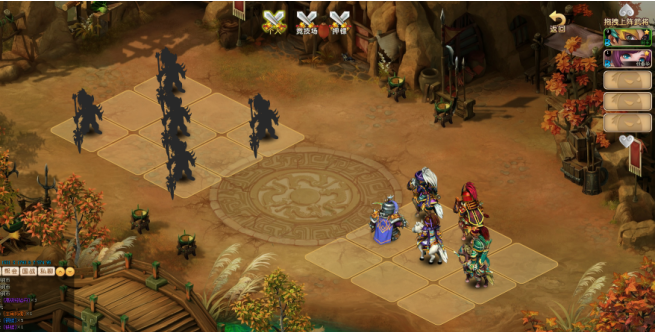 2. 玩家一共可以上阵6个武将,分配在游戏给出的9宫格中,可根据武将自身的特点进行位置摆放