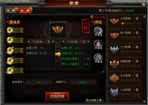 勋章,能够为勇士强者们带来血量 攻击 及伤害减免这些强大属性的加成。而且勋章的等阶越高,能够带来的属性加成就越多。因此对于玛法大陆之上的勇士强者来说,要想在与其他强者的PK对决当中变得更加强大,勋章是必不可少的一件装备。