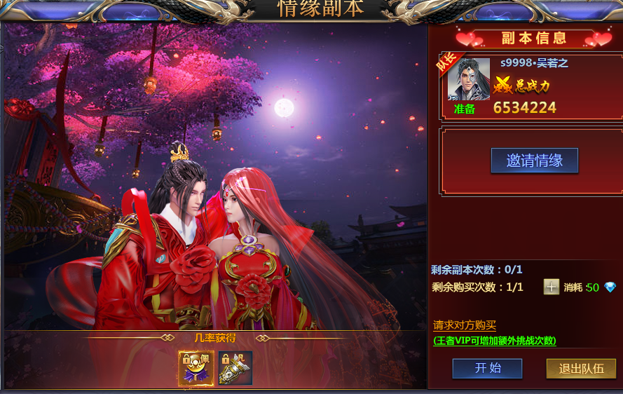 2. 双方一起参与情缘副本,可培养默契,获得奖励