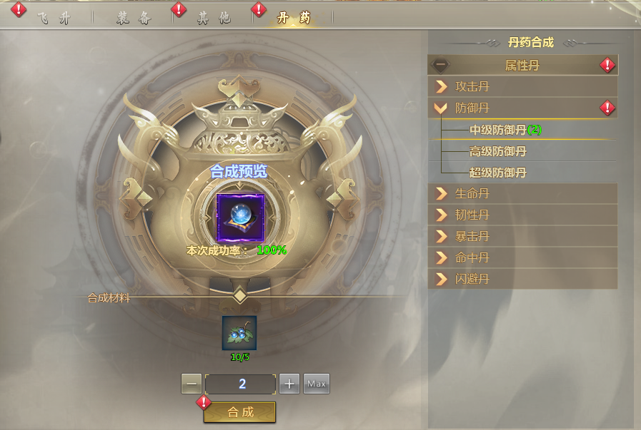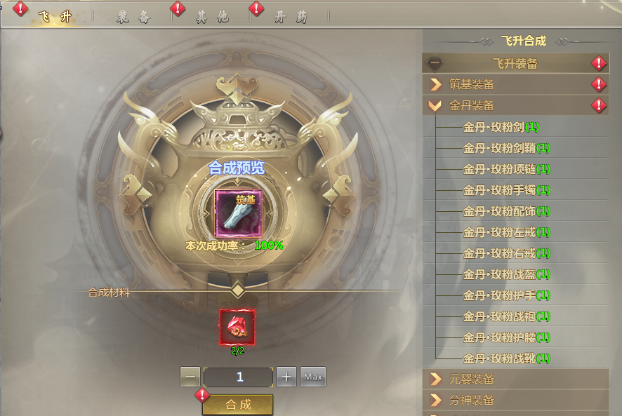 1. 飞升特殊品质合成,合成规则同飞升相同
