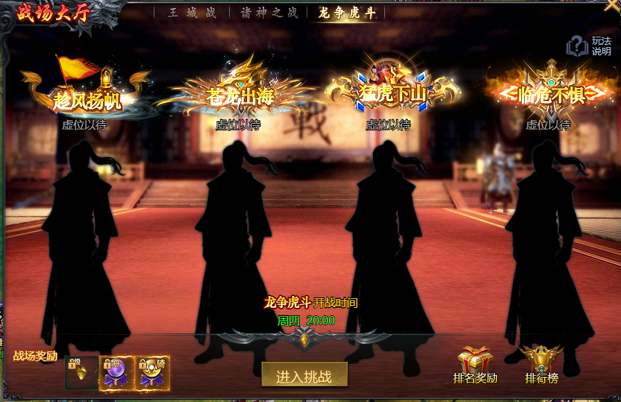 2. 活动开始时,按照战力划分,战力高的玩家划分为龙队,其他玩家为虎队