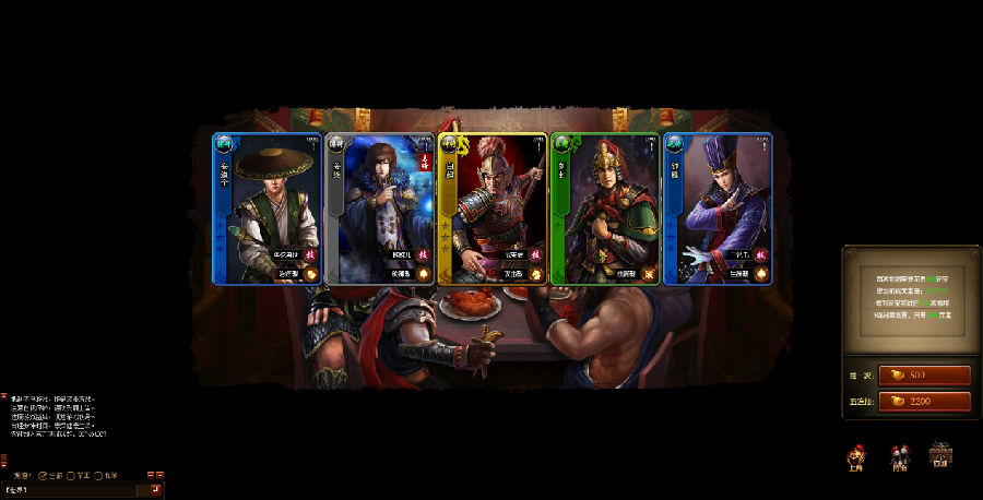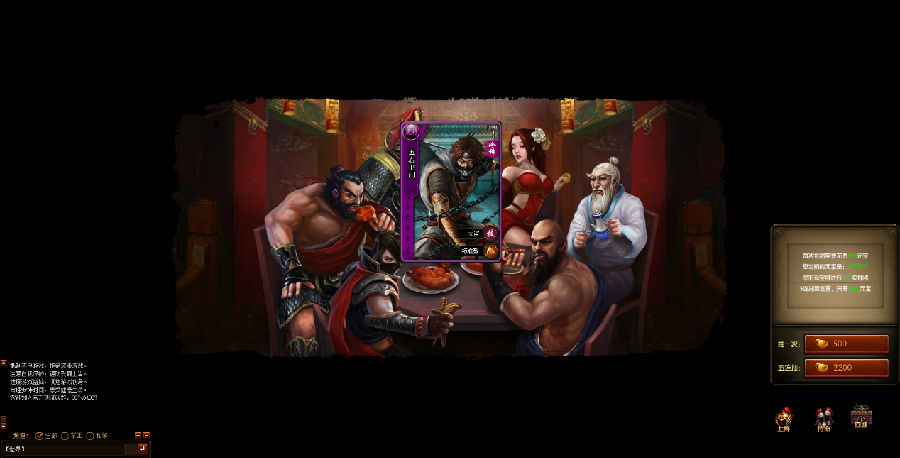 在酒馆中玩家可以选择宴请一个英雄或宴请群雄来举办宴会来获得威望,并随机获得一个或五个前来参加宴会的英雄。