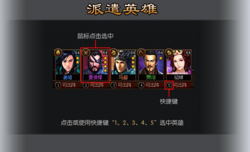 进入战斗后,玩家可以在战斗界面左下角的英雄栏处,通过快捷键或鼠标选中想要投放的英雄头像。