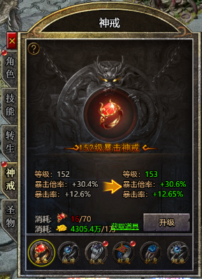 (1) 使用暴击碎片可以提升暴击特戒级别,增加暴击率、暴击倍率、暴击附加伤害属性