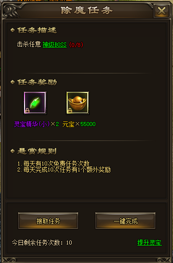 每日可完成10环奖励,10环任务全部完成后,还可领取一份单独的奖励!