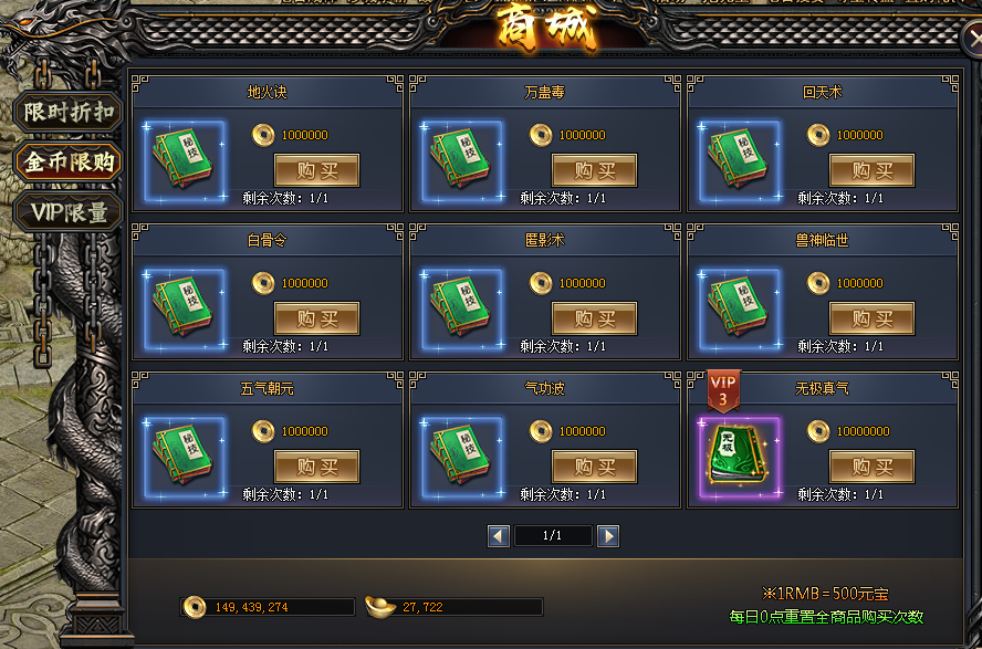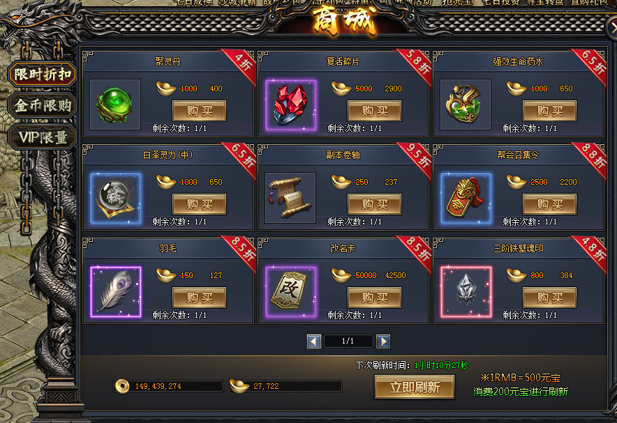 每隔一段时间刷新特价商品,或消费元宝进行刷新;