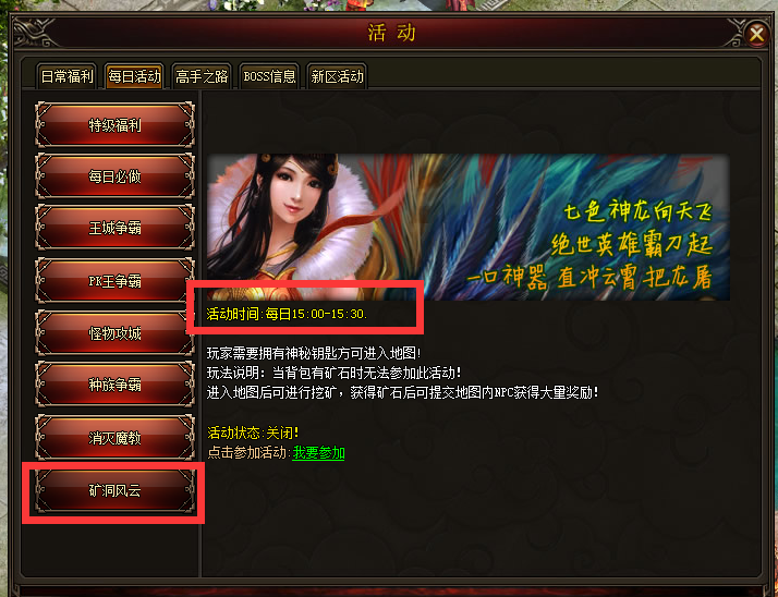 玩家每天15:00-15:30 消耗一个神秘钥匙,进入挖矿圣地。