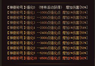 当强化值达到对应强化点,重新登录游戏可激活强化后称号伤害。