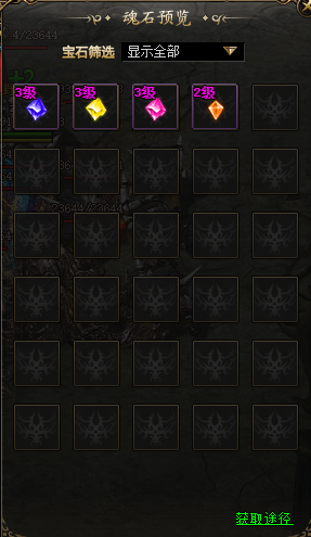 魂石预览自动筛选(去掉当前装备已经镶嵌的魂石种类),点击右键直接镶嵌,点击左键可以移动选中的魂石进行镶嵌(判断移动到对应的孔位附近才算镶嵌成功)。
