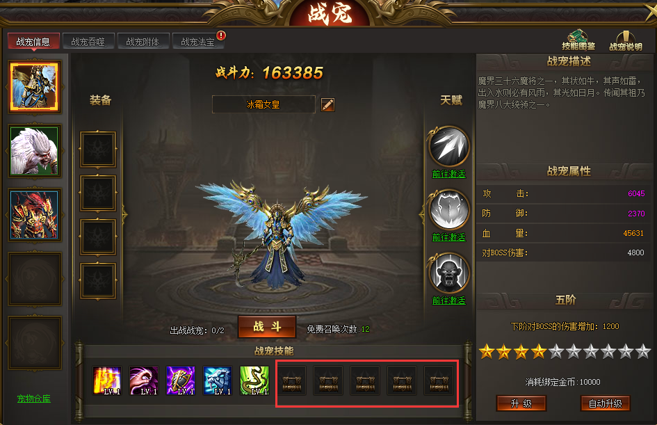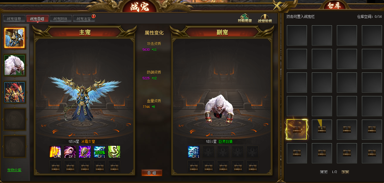 战宠技能栏可消耗金币进行解锁,吞噬后副宠消失技能可吞噬到主宠身上,有几率提升同等技能等级,。