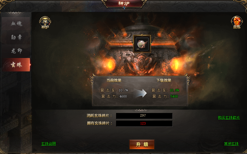 低等级的玄珠可以消耗一定数目的玄珠碎片进行升级,提升为高一级的玄珠。