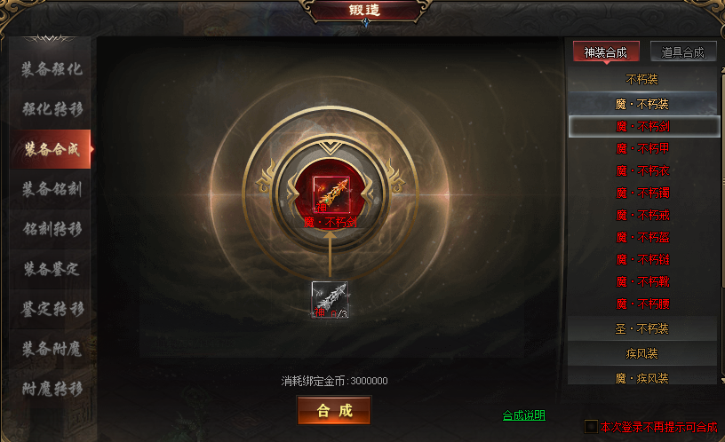 2.装备合成时若放入的材料中有绑定装备,则合成出的装备为绑定装备