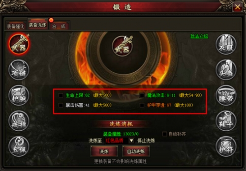 洗炼功能是直接对装备部位进行洗炼,最大为四条属性。