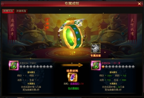 5. 提升专属戒指可获得大量属性,更可获得PK专属属性——麻痹和抵抗麻痹,助你PK中一展雄风。
