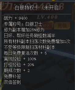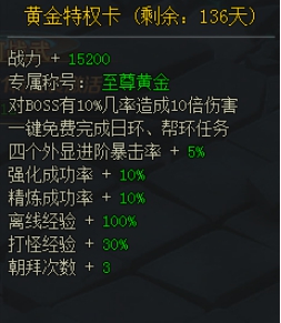 两种卡都对应多种专属特权,特权效果可相互叠加;
