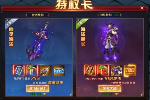 在游戏中,玩家可拥有两种特权,分别为白银特权和黄金特权;