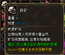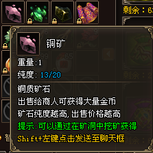 活动简介:进入矿洞即可挖矿,可以获得各种矿石,矿石可以拿到土城的杂货商人处换取金钱,挖矿需要“鹤嘴锄工具”,可在土城的npc铁匠处购买。