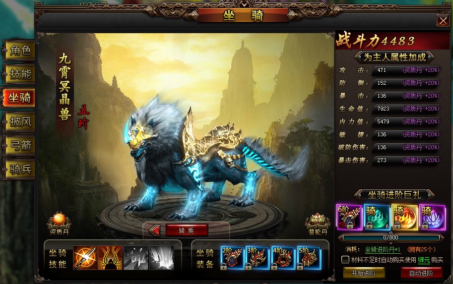 坐骑可以进行培养,培养等级越高可以解锁坐骑技能,并且可以穿戴更多的坐骑装备。