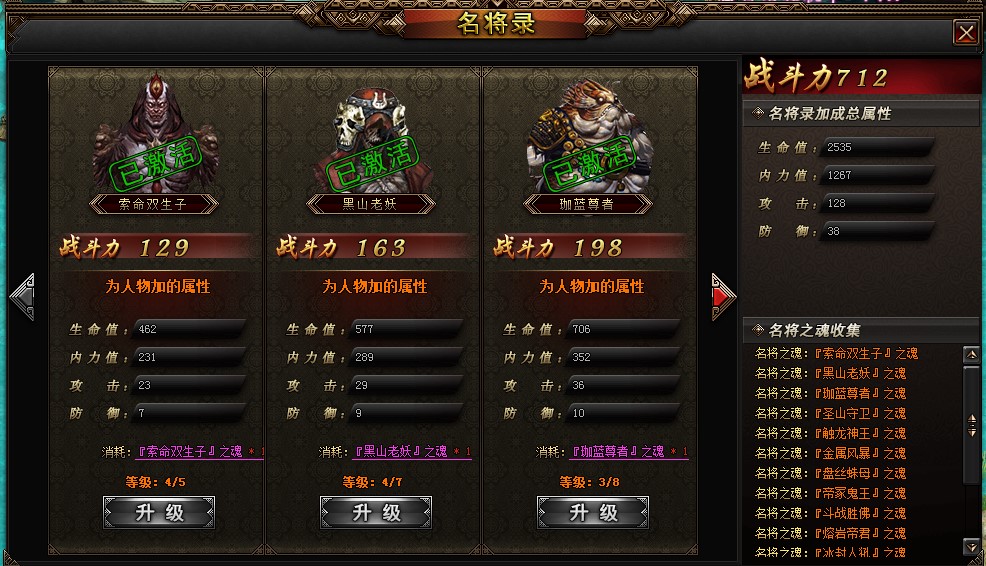 击杀BOSS可以获得BOSS之魂,用于激活对应的名将录,BOSS之魂大概率掉落。激活后可以提升属性。