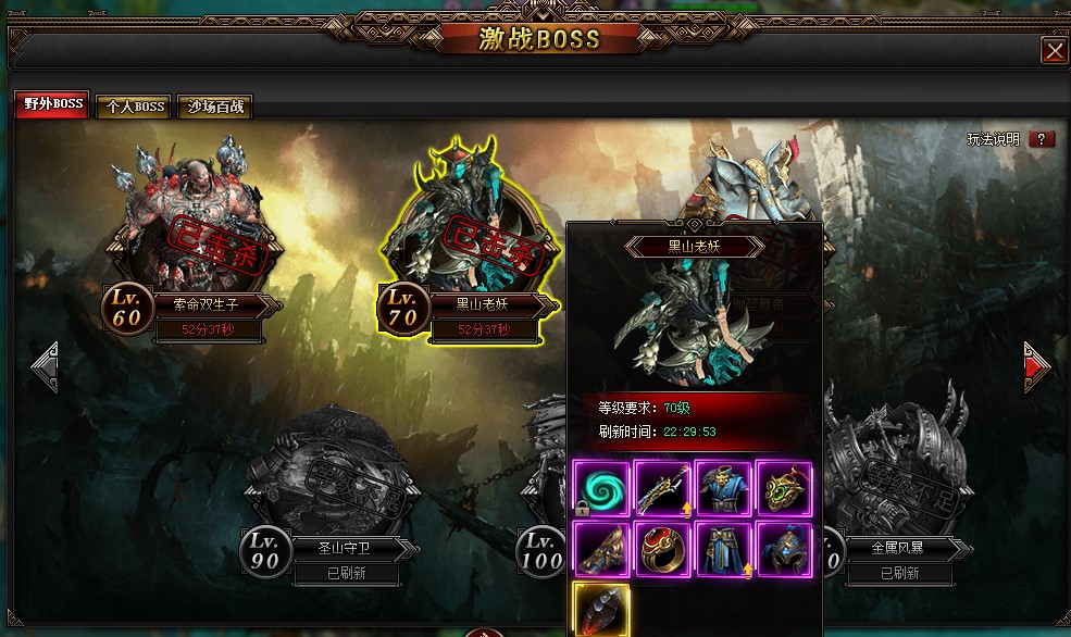 每天定时出现世界BOSS,与全服玩家一同击杀,可以掉落极品装备奖励,及各种稀有道具。