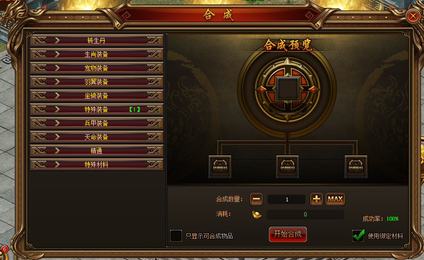 合成生肖装备:消耗(6)3合一,消耗对应数量低1阶坐骑装备合成高1阶