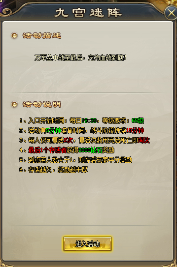 活动时间:每日19:25开放入口,有5分钟准备时间。