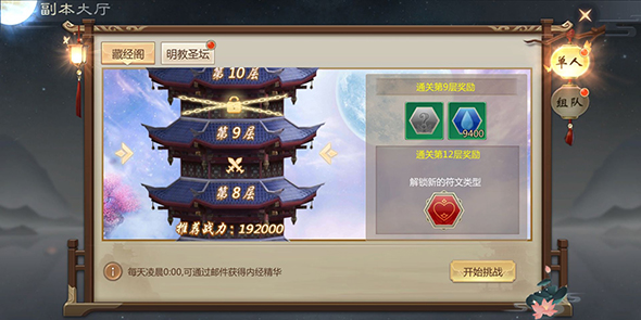 每次通关藏经楼都可以获得一定的内经和内经经验,消耗内经经验可以升级内经,获得更多的属性加成。