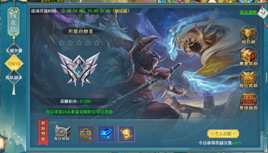 每日10V10玩法开启后,可通过【pk竞技】-【10v10】进行个人匹配。