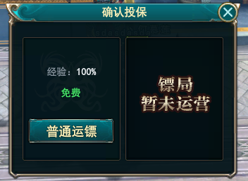 1、在开始运镖之前,如果国家镖局开启的话,我们可以选择在国家镖局进行投保,这样的话不仅运镖会享有额外15%经验加成,镖车被劫之后还可以获得一定的补偿,在国家冲突比较激烈的时候,这不失为一项不错的保险措施