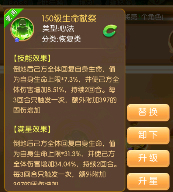 生命献祭这个技能,个人建议全阶段给脆皮副职业携带,它带来的增益是非常可观的,又回血又加输出,满星达到了34%。这是一个很可怕的加成。