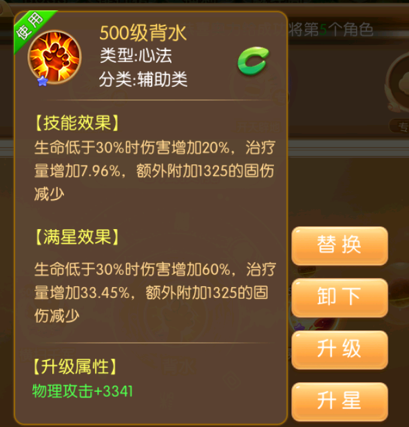 背水这个技能推荐爬塔的时候使用,加上战意,那是见一个秒一个,只要死不了,对面的怪不管多少血就是一回合。